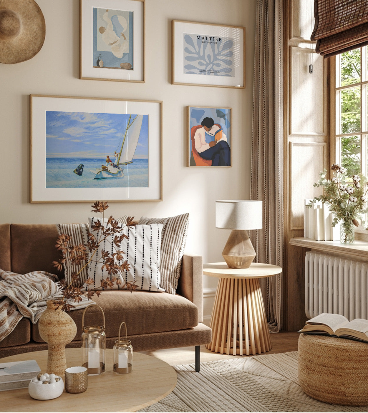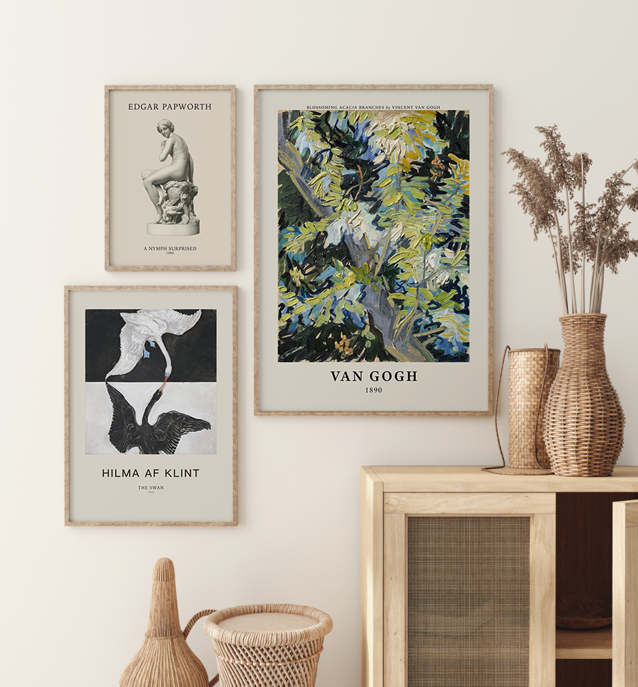 Holen Sie sich Inspirationen, wie Sie Ihre perfekte Galeriewand gestalten können, indem Sie die Registerkarte "Galeriewände" erkunden, wo Sie die Möglichkeit haben, Ihre eigene einzigartige und persönliche Galeriewand mit unserem Angebot an kombinierten Bildern zu gestalten.