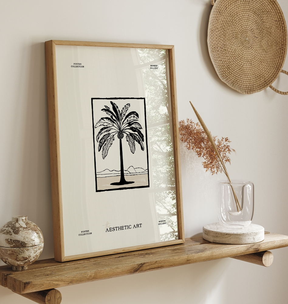 Ästhetisches Poster eines Ananasbaums auf beigem Hintergrund mit Textdetails.