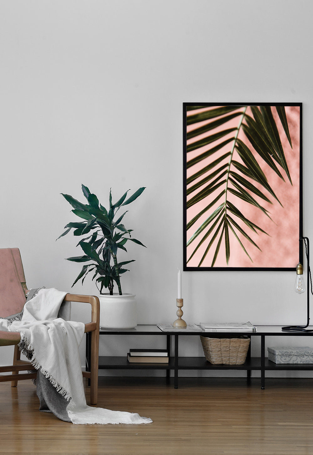 Green leaf pink wall