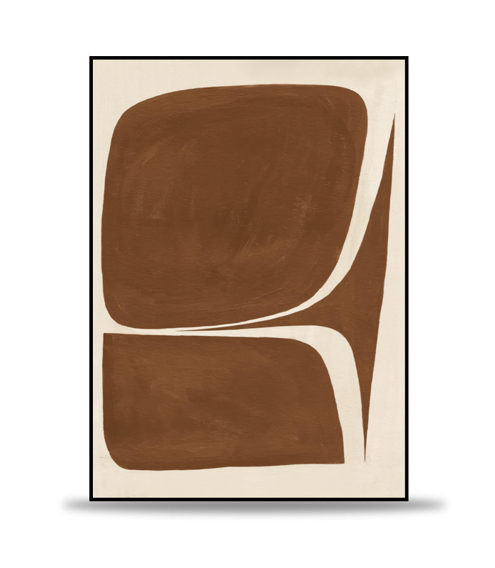 Handgemaltes Motiv aus 3 verschiedenen Formen in brauner Farbe auf beigem Hintergrund.