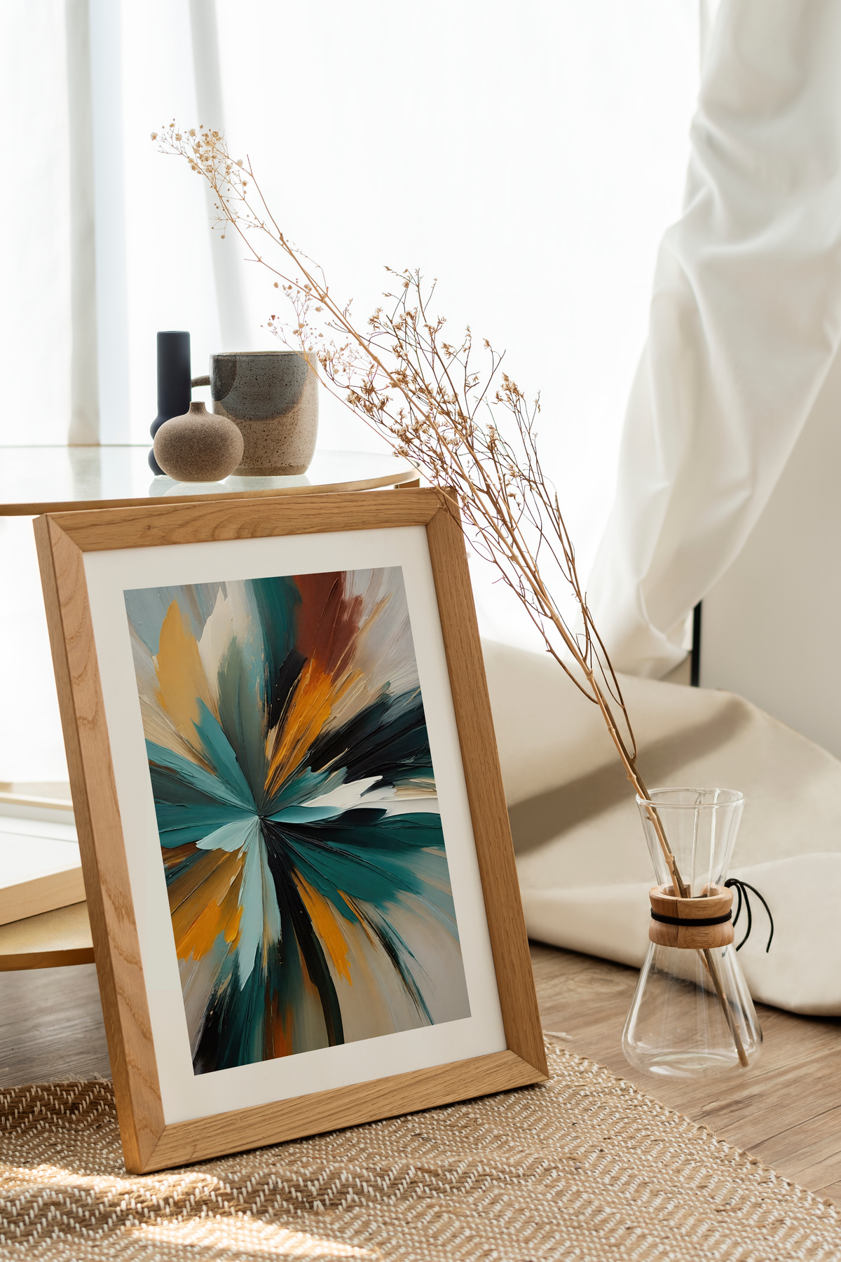 Poster mit abstrakter Handmalerei in gemischten Farbtönen, um ein künstlerisches Gefühl in Ihr Zuhause zu bringen. Zeitloses und modernes Poster, das sich für alle Arten von Räumen und Umgebungen eignet.