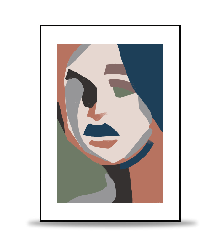 Abstract painting inspiriert von skandinavischer Kunst und Trends. Das Gemälde zeigt eine Frau in harmonischen Tönen, die ein angenehmes Gefühl vermitteln.